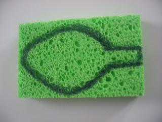 1. Draw a bulb shape on the sponge. Cut out shape and wash the marker off.